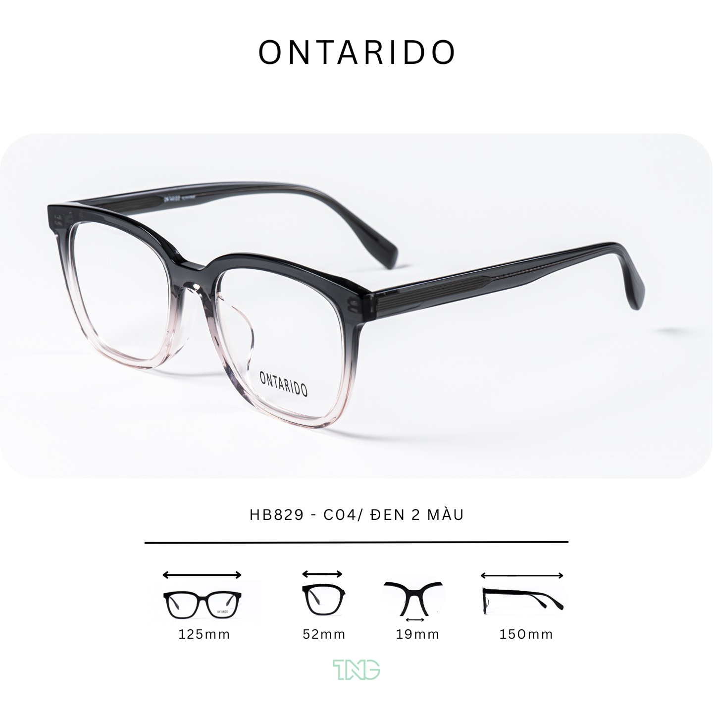Kiểu dáng: Gọng kính dáng vuông bo nhẹ ở các góc, tạo cảm giác cân đối và hiện đại cho khuôn mặt. Thiết kế thanh thoát, dễ đeo, phù hợp với nhiều dáng mặt và phong cách khác nhau.