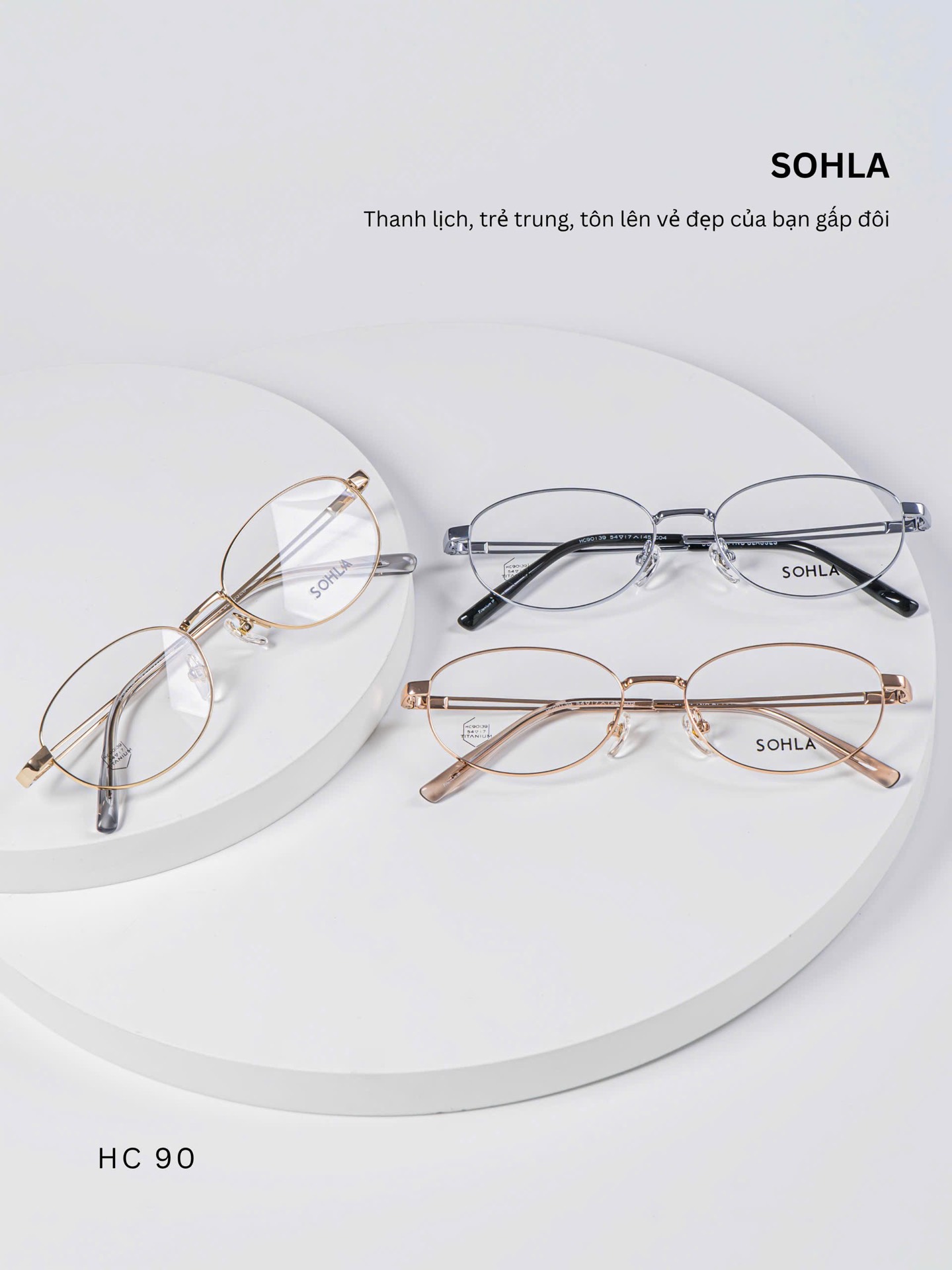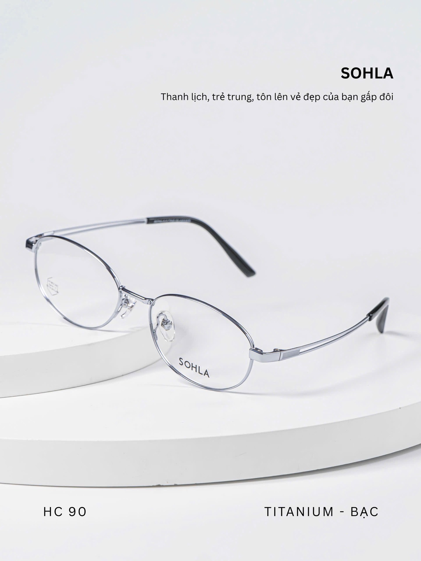 Gọng kính dáng oval thanh mảnh, đường nét bo tròn mềm mại tạo cảm giác nhẹ nhàng và thanh lịch. Form kính cân đối, giúp khuôn mặt trông hài hòa và tinh tế hơn, phù hợp với nhiều dáng mặt.