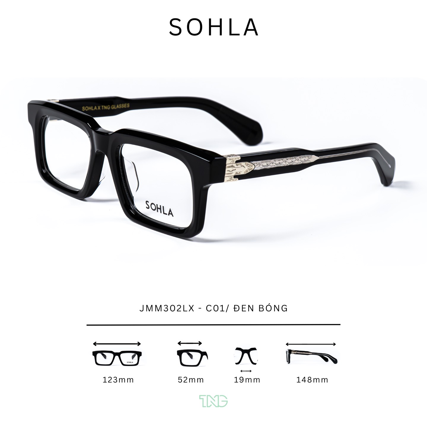 Kiểu dáng: Form vuông bản to, đường nét góc cạnh rõ ràng giúp gương mặt trông sắc nét và cân đối hơn. Thiết kế hiện đại, dễ tạo điểm nhấn khi đeo.